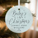 Special keepsake ornament to commemorate baby's first Christmas. Design features a simple minimal design with "Baby's First Christmas" displayed in elegant script and serif text pairing. Personalize with the baby's name and the year. A simple white border and background color can easily be changed by clicking on details and editing using Zazzle's design tool. Design by Moodthology Papery