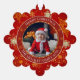 Capture your precious family moments with this beautiful Personalized Photo Christmas Ornament. Featuring a vibrant red background with a delicate gold snowflake pattern and a unique scalloped snowflake frame shape, this keepsake is the perfect addition to your holiday decor.