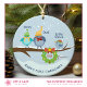 Create a cherished keepsake with this personalized Baby's First Christmas ornament that features a cute illustration of a family of birds wearing cozy winter hats and scarves sitting on a snow-covered branch that's adorned with a festive wreath. Delicate falling snow adds a touch of magic to the scene. Customize the front of the ornament with your own text to mark “Baby's First Christmas,” complete with the current year, and space to add the names of your loved ones.