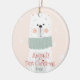 NewParkLane - Baby's First Christmas Ornament, with a cute polar bear and a snowy background in peachy pink. Easily fill in your baby's name and year.