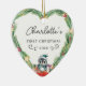 Commemorate your baby's first Christmas with this elegant, customizable round ceramic ornament. The design features a charming, minimalist wreath with a sweet penguin, gift packages, handwriting font, offering a blend of rustic simplicity and timeless elegance. In the center of the wreath, you can personalize the ornament with your baby's name, beautifully showcased in a delicate script font.