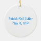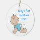 Round Christmas tree ornament, with cartoon graphics of a baby boy. Blue text on front reads Baby's First Christmas 2010. Personalize the text on the back of the ornament with your baby's name and birth date. Great baby's first Christmas ornament, and makes a sweet gift too.