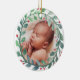Personalized circle ornament with our watercolor wreath artwork surrounding a placeholder to put your baby's photo. Personalize the back with the baby's name, birth date and weight on the back. This makes a great one-of-a-kind gift for family and friends.