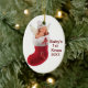 babys first christmas ornament - customizable. This sweet christmas ornament celebrates baby's first holiday season. Custom it with babys name and the year of the gift for that special present to be treasured forever. This tree decoration is so cute as it is or the color of the background can be changed to make it even more personalized. This image of a baby angel in a xmas stocking is just right for a new parent that any mom or dad will be thrilled to receive.