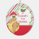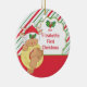 Cute personalized dated Christmas Ornament featuring an adorable baby deer sleeping on a moon set on a red & green background, just add YOUR PHOTO! Perfect for baby girl or baby boy first christmas & second christmas. A Wonder Christmas gift sure to be treasured for many years to come.