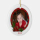 Babys First Christmas ornament with traditional flowers and red wreath design. The text is fully customizable. Add your information or change it completely. Template can be used for any Christmas picture. Simply change the text to suit your needs.