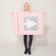 Baby's First Christmas Personalized Blush Pink Fleece Blanket makes a precious gift idea for a baby girl. Blanket is designed with pastel coral pink background and patterned small white Christmas tree silhouettes. "My first Christmas" in calligraphy centered on large tree with light grey border and baby's name customized on lower blanket.
