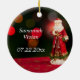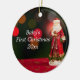 Baby's First Christmas Personalized Santa Ornament. One side reads "Baby's First Christmas 20xx" and the other side has the baby's name and birthdate. Just fill in your own details.