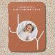 This festive Baby's First Christmas Photo Blanket is decorated with the word JOY in modern typography on a rust, terracotta background.