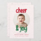 Share your little one’s first Christmas joy with this sweet and modern holiday card. The playful “cheer and joy” design highlights your baby’s adorable photo, making it perfect for celebrating a new arrival or announcing your baby’s birth this festive season. Ideal for family and friends who love keepsake greetings. Add your child’s name, date, and message for a personal touch. Personalize yours today.
