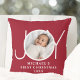 Baby's First Christmas Photo Red Throw Pillow