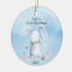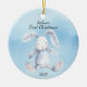 Baby's First Christmas Rabbit Blue Personalized Ceramic Ornament