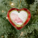 Baby's First Christmas Red Gold Photo Heart Ceramic Ornament