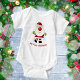 Personalize this baby's First Christmas one piece or T-shirt featuring a cute red-nosed Santa image with your child's name. Formatted text all ready for you to edit in the easy Zazzle text editor. Created with artwork by Barry from psptubez.com