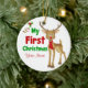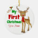 Let your little one show off their first chirstmas in a fun way with this reindeer personalized 1st Christmas design. original artwork delightful-doodles.com.
