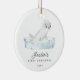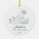 Simply perfect Baby's First Christmas ornament featuring a sweet little sea. sitting on an ice block with a modern calligraphy script.