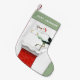 Cute December baby Christmas stocking featuring stork making a special delivery. Edit text to add his or her name.