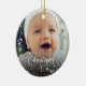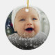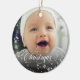Your baby’s name and birth date are lovingly displayed, making this ornament a personalized treasure to hang year after year. The word Christmas appears in a graceful swirly script, adding a touch of elegance and festive cheer to the design. Whether it’s nestled among twinkling lights or gifted to proud grandparents, this ornament is a beautiful way to mark a milestone and make memories that sparkle.