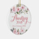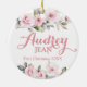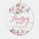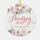 Pretty pink flowers, baby's first Christmas personalized tree ornament, change the text yourself when ordering