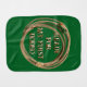 Green baby burp cloth a lariat surrounding the words Ready For My First Rodeo. Back of cloth has a pattern of lariats with the words, Baby's First Christmas. Customize text to include your baby's name.