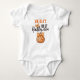 Baby's First Halloween Pumpkin Bow Baby Bodysuit. A custom baby's name in a trendy script, orange pumpkin with cute bow and orange bows. Personalize the bodysuit with your baby's name. A lovely Halloween holiday keepsake.