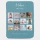Baby's First Year Photo Collage Birth Stats Blue Baby Blanket