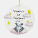 Baby's first bump Christmas ornament for Christmas tree. With a cute panda and pink clouds with stars and a crescent moon. 2021. Great to decorate Christmas trees. Parents to be ornaments.