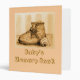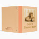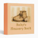 Peach colored binder with print from sketch of a baby shoe. Binder is entitled "Baby's Memory Book".