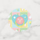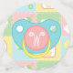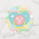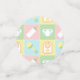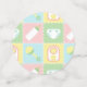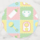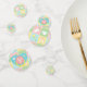 Four squares in soft pastels of pink, green, blue, and yellow are framed by a white design like stitch marks and decorated with cute, baby-themed icons of a bottle, diaper, rattle, and bib. Each piece of confetti has a pacifier-shaped monogram spot on the back, where you can customize it with the baby's initial to create a truly unique party decoration for your baby shower. This confetti will match with any other Baby's Quilt product so that you can easily make your event as coordinated as you desire.