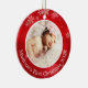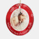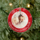 Red Background with white Snowflakes sets off this Personalized Baby's First Christmas Ceramic Ornament. Change the words to anything you choose. It can be a family photo with Merry Christmas from your family. Add a photo easily using our template. If you need help, please contact me. I will be happy to help you.