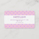 A cute card for babysitters who want to give out their contact information. It has a stroller, or pram, on the front and a spot to let others know your special qualifications such as first aid certified. The polka dots give it a nice touch that will make you stand out and convince those parents you are right for the job!