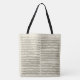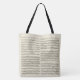 Both sides of this tote bag (with the option of being a cross-over type) are completely covered with a facsimile of several pages of Anna Magdalena Bach's graceful notation of the Second Suite for solo cello composed by her husband, Johann Sebastian Bach. The off-white background color mimics the look of aged manuscript, and the immortal composition is clearly recognizable in all its details.