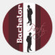 So you popped the question, got down on one knee, proposed and are going to be tying the knot. Congratulations! It's time for the men to have one final party to celebrate your upcoming nuptials. This sticker, which has two well groomed, male silhouettes wearing a black tuxedo, bow tie and crisp white shirt is set against a striped background of white, burgundy red and maroon. The words "Bachelor Party" are bold and clear and these stickers are ideal for sealing your envelope invitations with or to stick onto foil wrapping paper for that gift you’ve bought for the groom. For the full range of matching products in this line, click on the “mensgifts” link on this page, followed by celebrations and parties. ©Robin Wood – mensgifts. All rights reserved.