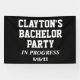 Announce the ultimate celebration with our “Bachelor Party In Progress Banner”. Customize it with the name of the groom-to-be and the date of the event. Let everyone know that the party is on, and get ready for a night of fun. Order our personalized banner today and make the groom's last night as a bachelor truly special!