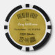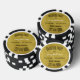Unique bachelor party invitation done on a poker chip. A gold tone background, on the black and white striped poker chip, with black and white custom text ready to personalize for your event. Fun way to invite guests to your special day.