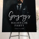 Welcome your guests with an elegant, minimal photo Bachelor party welcome sign with white text. Make a stunning first impression with this personalized Bachelor party welcome sign. Perfect for adding a touch of class to your Bachelor party celebrations, this sign ensures a cool and stylish welcome for all attendees.