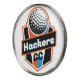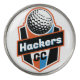 Mark your spot on the dance floor with the ultimate badge of honor. Add your own scramble team name to this retro shield logo or rock the classic Hackers GC for your weekend crew.