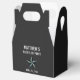 This star themed favor box is a fun way to package wedding favors that you can give the guys, including your groomsmen, as a gift from your bachelor party outing. Personalize with the groom's name and the bachelor party date. The colors of the background and text and also the font can be changed to fit your preference.