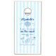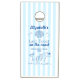 The invitation is designed with hand drawn doodles of ocean themed decor, seashells, starfish and waves with beautiful blues.