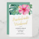 Modern yet elegant personalized calligraphy invitations frames your event details with a border of simple gold confetti and tropical greenery over a crisp white background. Your event details are set in an simple sans serif and script type in real gold foil. Perfect for bachelorette or girl's weekend in Miami Florida, Palm Springs, Hawaii or any tropical destination. To see more cute wedding invitations, bachelorette party and ladies get together invitations like this visit Do Tell A Belle on Zazzle at www.zazzle.com/dotellabelle