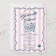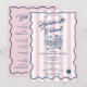 A colorful hand drawn playing cards dice casino theme design. A beautiful design perfect for Bachelorette weekend parties. This Bachelorette Party invitation includes a weekend itinerary on the back. A retro modern vintage pink and blue striped Bachelorette weekend invitation.