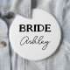 A cute pin button badge for the bride. Great for bachelorette parties, bridal showers and hen nights. To change or delete the text click on the personalize button.