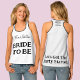 This personalized bride to be's tank top features trendy bold black text on both sides. A quality black and white top that stands out from the crowd. A great tee for your bachelorette party or bridal shower. To change or delete the text click on the personalize button.