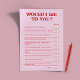 Celebrate the bride-to-be in style with our chic and playful ''Cheers to Love'' bachelorette collection. This playful ''Would I Lie To You'' Game Flyer is the perfect icebreaker for your bachelorette or bridal shower. Designed with elegant simplicity and a hint of bubbly charm, it invites guests to mingle, laugh, and create lasting memories together. Select ''Edit using Design Tool'' to customize further. *recommended edit using a computer *Please note that the red color appears darker in print and may differ from what is shown in the mockup.