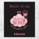 Text: On cloud WINE. A pink cloud an wine glass. Personalize and add the name of the bride to be. Black background.