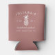 Kick off your bachelorette party, girls weekend or trip with these unique custom can coolers. Personalized design in dusty terracotta pink features the bride to be's name, event type, year and destination flanking a white pineapple silhouette illustration.