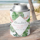 Tropical Palms Floral Flowers Watercolor Bachelorette Weekend Party Can Cooler - includes beautiful and elegant script typography with modern botanical blush pink flowers and tropical Hawaiian greenery for the special Bride to Be celebration.