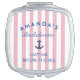 "Add a touch of nautical fun to your bachelorette party with this stylish "Last Sail Before The Veil" compact mirror! Featuring a chic pink and white striped design with bold navy blue lettering, this compact mirror is the perfect accessory for the bride tribe. Small enough to fit in a purse or clutch, it’s the ideal on-the-go mirror for quick touch-ups throughout the celebration. Plus, it makes a thoughtful and practical keepsake for the bride and her crew!"