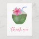 Handpainted watercolor coconut (painted by yours truly) and modern brush font combine for a stylish "thank you" postcard which would be perfect for economical thank you cards for tropical bachelorette or adult summer birthday.