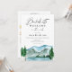 Bachelorette weekend in the woods invitation with itinerary on the backside. Featuring watercolor illustration of mountains, tree and a lake with camping accessories on the backside. Customize with your text. Click "click to customize further" to change the font style, size or color and move text boxes.